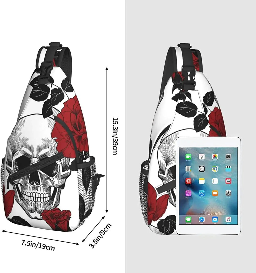 Skull Flowers Unisex Crossbody Backpack Small Sling Bag